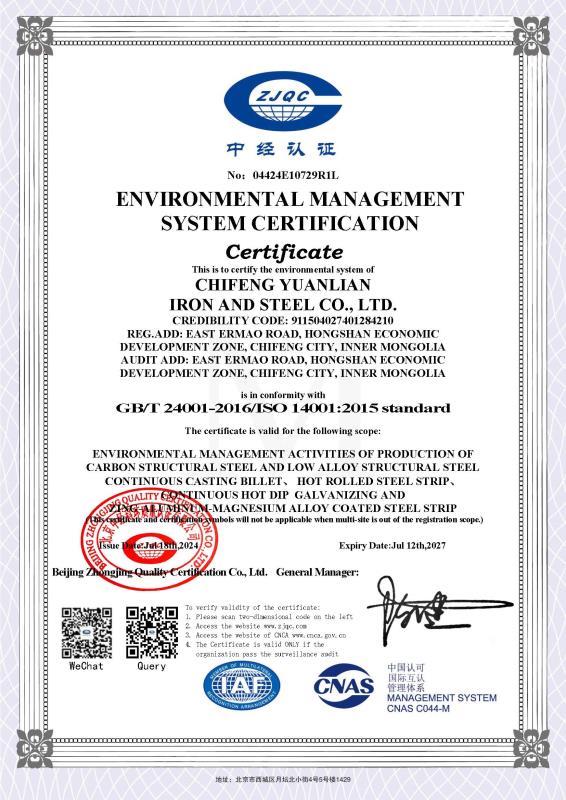 環(huán)境管理體系認(rèn)證證書